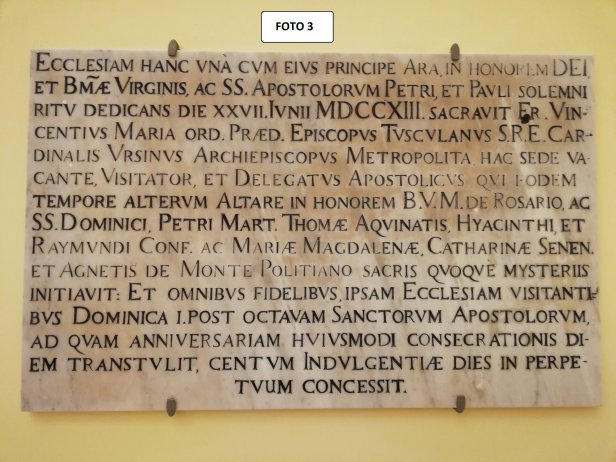 Dopo le forti pressioni da parte dei Vescovi latini per far abbandonare il rito orientale, nel 1632 i casalvecchiesi costruirono la Chiesa Madre intitolata ai Santi Pietro e Paolo Apostoli. Dalla prima edificazione, l’edificio è stato più volte rimaneggiato ed ingrandito. Si conosce, come attesta una lapide all’interno (foto 3), la data della consacrazione avvenuta il 27 Giugno 1713 da parte del Cardinale Vincenzo Maria Orsini, divenuto poi Papa Benedetto XIII.